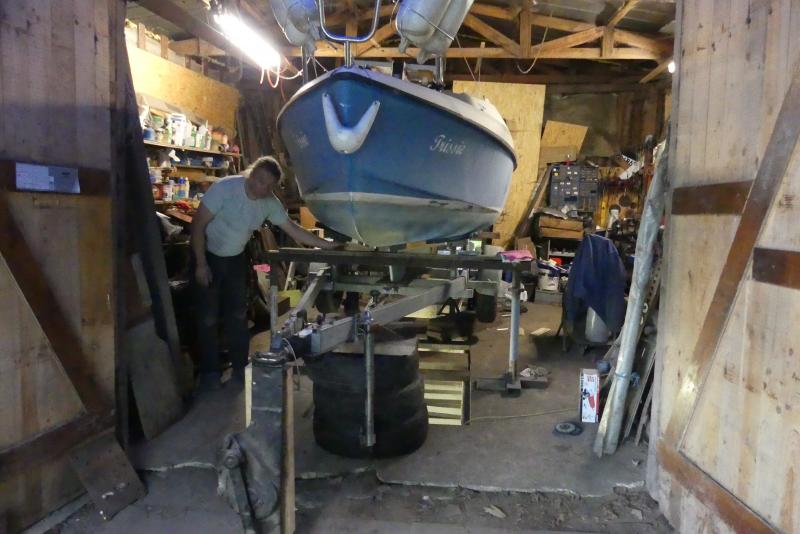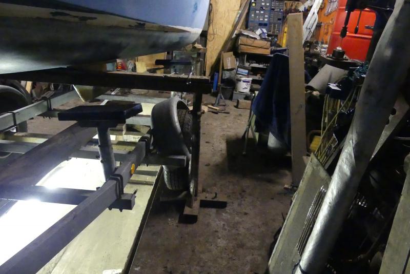 Deshalb mal ein paar Bilder wie es funktioniert. Benötigt werden ein paar stabile Böcke. Wichtig ist, daß sie breiter als der Trailer sind. Dann noch ein paar Wagenheber und jede Menge Holz zum unterlegen und zum sichern. Zuerst hoben wir den Trailer beidseitig hinten an, dann vorne. Immer überall ein Stückchen, damit es zu keiner zu großen Schieflage kommt, die das Ganze instabil werden lassen würde. Anhang 29103 Sobald der Trailer hoch genug ist, die Böcke drunter und mit Holzkeilen seitlich stabilisieren. Wichtig dabei ist, genug Auflägefläche zu haben um das GFK nicht zu beschädigen. Anhang 29104 Anhang 29105 Jetzt einfach den Trailer wieder ablassen und raus fahren. Anhang 29106 Oder wie in meinem Fall erst mal den Kotflügel lösen, da die Böcke um einen mm zu schmal waren. lol27lol27lol27 Anhang 29107 Schon kann man sicher und unbehindert am Unterwasserschiff arbeiten. (cool) Anhang 29108 |