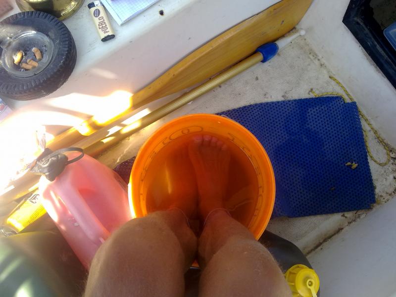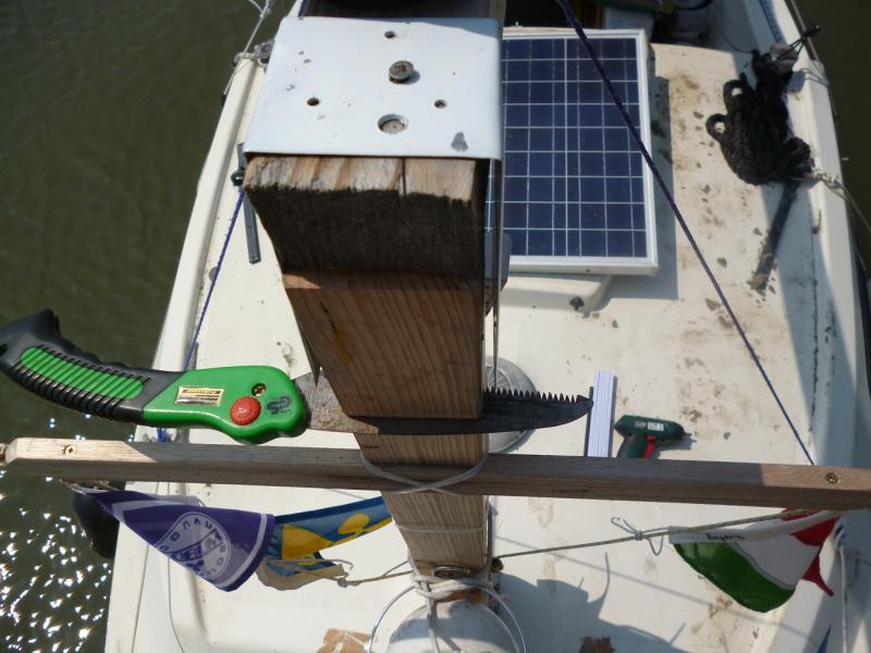 Trissie ist gut vertäut, ich hab einfach meine insgesamt 48 m ankerleine mit Kette genutzt und sie an einen Baum gebunden. Ansonsten schien mir das heute vormittag zu kritisch und ich hatte einige Stunden Sprit besorgen vor mir ..... Bilder vom Liegeplatz und Problembrücke.