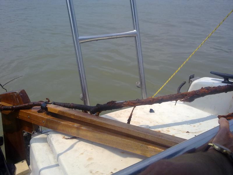 Der komische Ast auf der Backskiste blockierte mal mein Ruder. Ich mußte mitten in der Fahrrinne den Motor abstellen und 5 Minuten werkeln bis ich ihn endlich weg hatte. ![]() Meine Fernschaltung hab ich heute übrigens außer Betrieb gesetzt. Es ging der Rückwärtsgang nicht rein. Jetzt schalte ich direkt am Motor von Hand. ![]() Jetzt mach ich noch klar Schiff und breche auf. ![]()