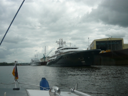 Wie jedes Jahr Schiffsneubauten bei A + R , Lürssen, Fassmer alle in Lemwerder und Bremen Vegesack an der Unterweser.