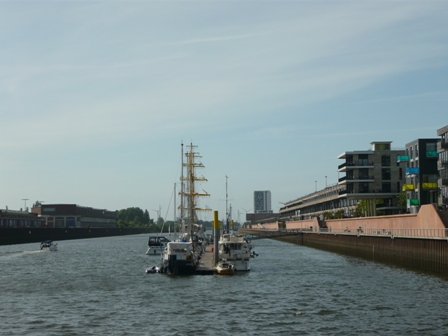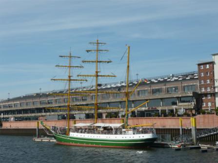 Weiter gehts Marina Bremen Überseestadt mit dem Segelschiff (Becksschiff) Alexander von Humbolt was jetzt Hotel und Restaurandschiff ist und in 2016 seinen endgültigen Liegeplatz bei der Becksbrauerei in Bremen erhält.