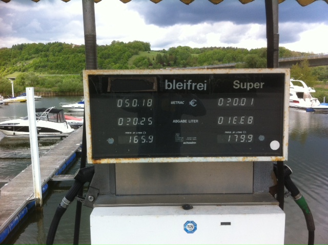 Info: Dieser Preis gilt für Gäste, feste Hafenlieger haben 3 ct Rabatt auf den Liter, und damit sind wir aktuell wenig über dem Straßenpreis