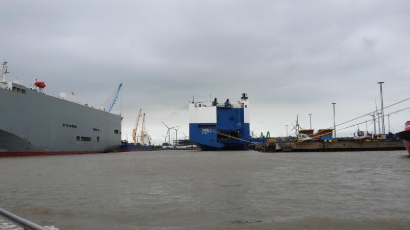 Waren gestern hautnah an den Seeschiffen und Autotransportern.