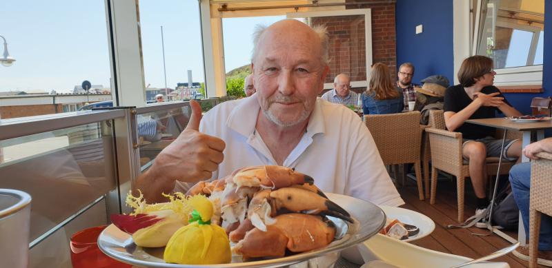 ![]() Sind heute vor der Hitze geflüchtet, von Bremerhaven mit klimatisierten Seebäderschiff nach Helgoland, Helgoland 25 Grad und eine Brise ging auch noch. Auf Helgoland gab's dann die Spezialität Knieper (Taschkrebsscheren) zu Essen.