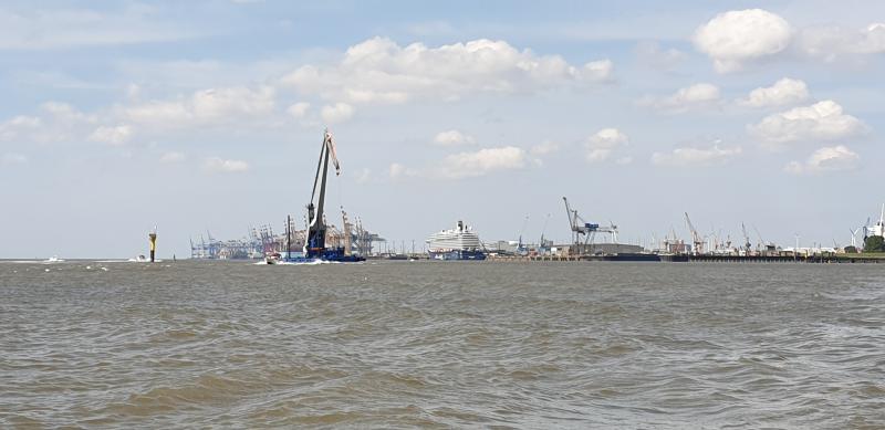 ![]() Vor Bremerhaven, im Hintergrund Mein Schiff 5
