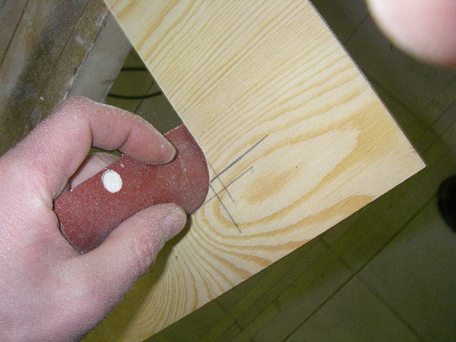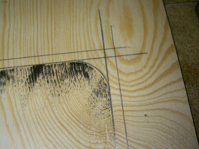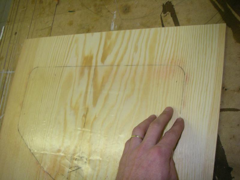 Um die Symetrie nochmals zu prüfen kann man eine h#lfte am Boden ankritzeln und dann die Schablone drehen um zu sehen wo man landet