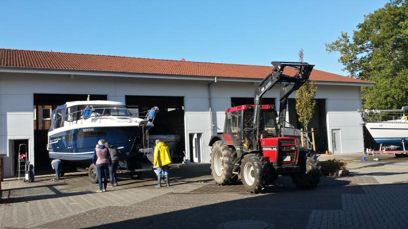 ![]() Saisonende heute Boote in die Halle bei uns im Hafen.